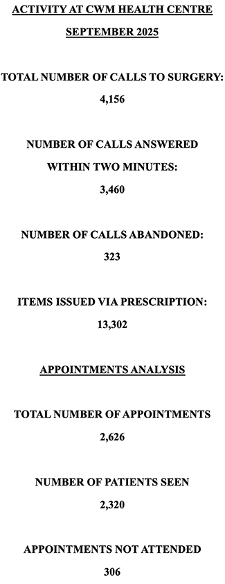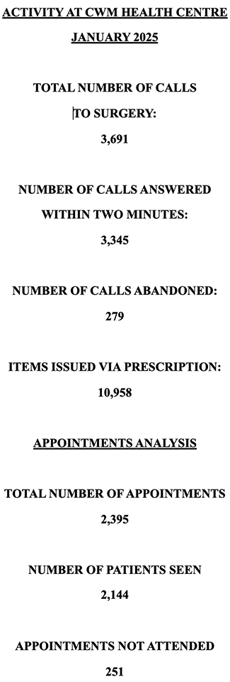 Cwm Health Centre is a large, friendly and well run surgery. We pride ourselves on providing an efficient, modern and comprehensive range of health services for our patients. If you have any comments regarding our website, or services in general, we would like to hear from you. Please use the buttons on the left to navigate around our site.